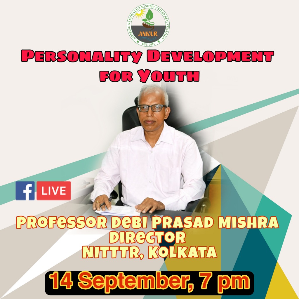 - Prof. Debi Prasad Mishra, Director, NITTTR, Kolkata will deliver a lecture on Personality Development For Youth on 14th September 2021 at 7:00 PM
