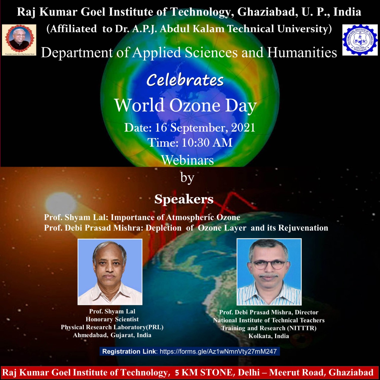 - Prof. Debi Prasad Mishra, Director, NITTTR, Kolkata will deliver a lecture on World Ozone Day on 16th September 2021 at 10:30 AM
