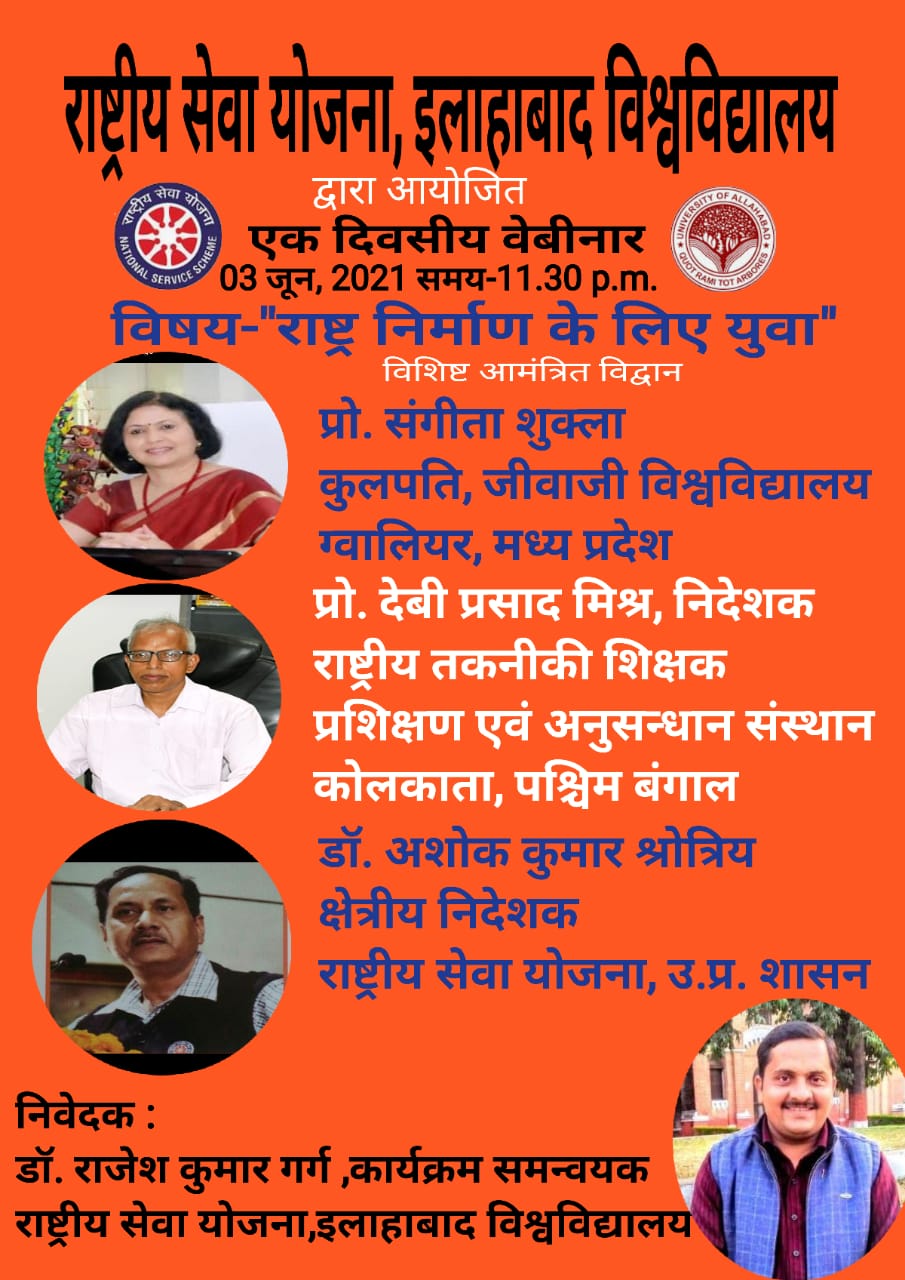 - Prof. Debi Prasad Mishra, Director, NITTTR, Kolkata will deliver a lecture on Youth for Nation Building on 03/06/2021 at 11:30 AM