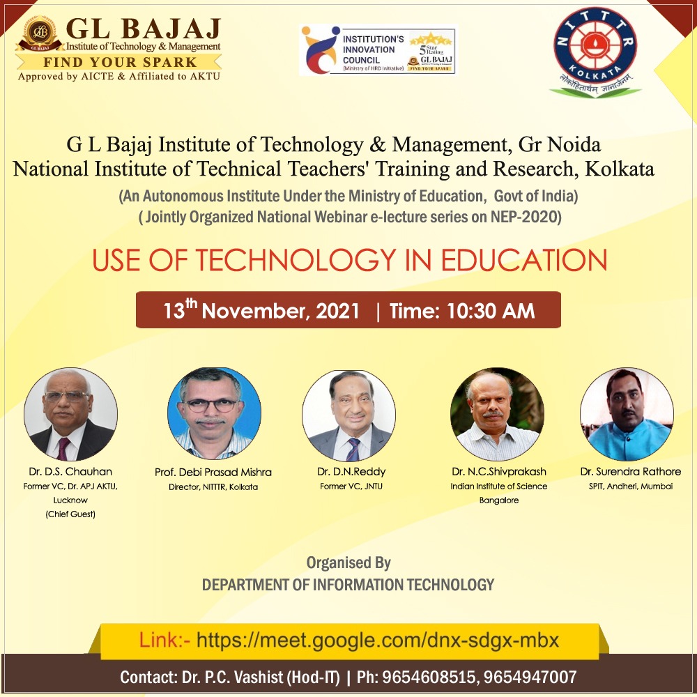 - Webinar e-lecture series on NEP-2020 on USE OF TECHNOLOGY IN EDUCATION